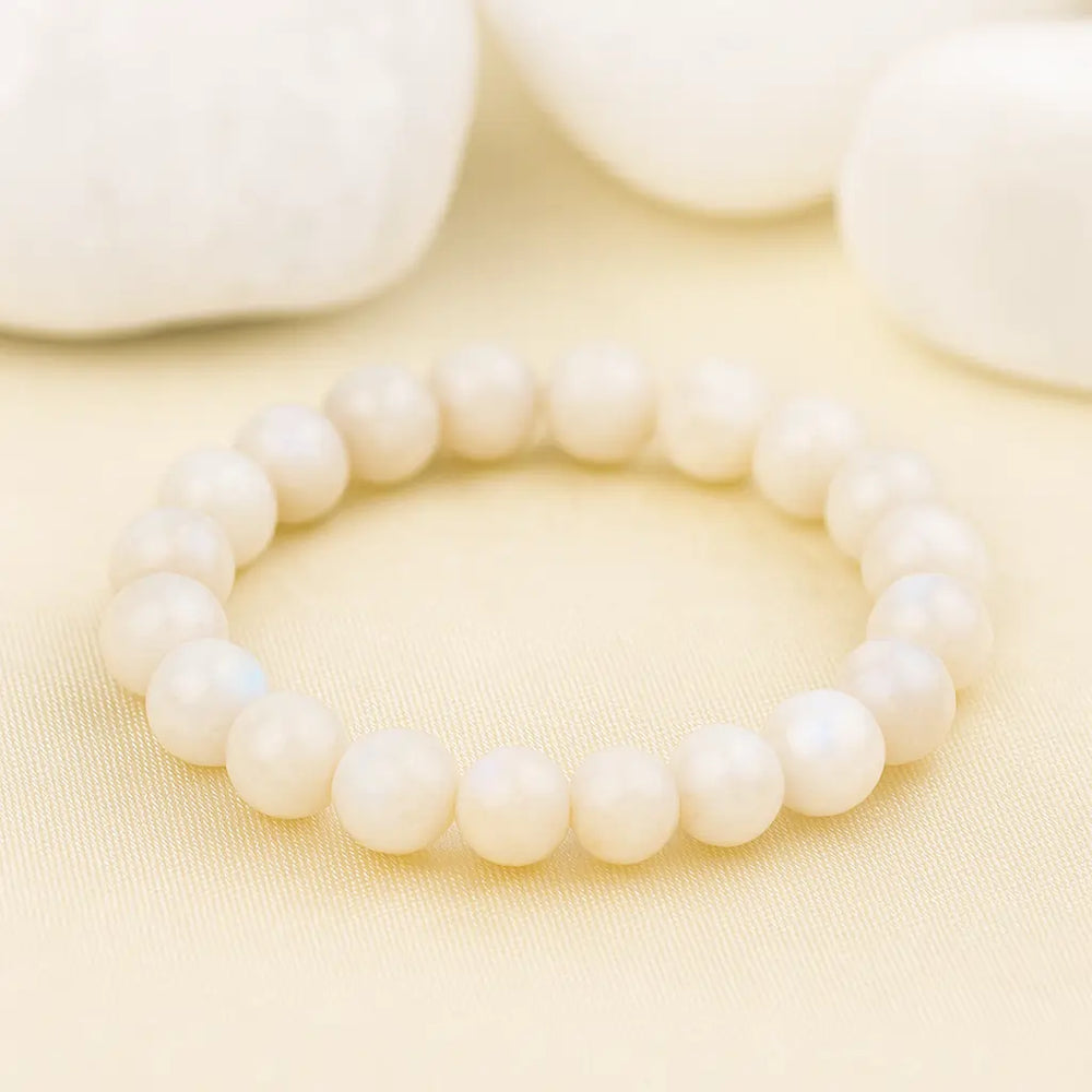 Embrace divine feminine energy and emotional balance with our Moonstone Bracelet from 7Chakras.in. Known as the "Stone of New Beginnings", moonstone helps enhance intuition, calm the mind, and align your inner energies. This bracelet is beautifully handcrafted using natural moonstone beads, perfect for meditation, healing, or daily spiritual wear.