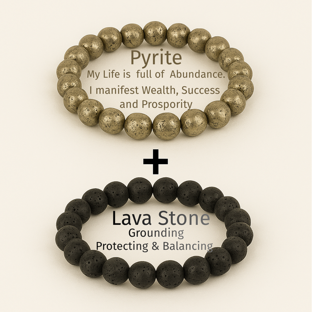 ✅ Pyrite attracts prosperity, confidence, and success, while Lava stone stabilizes emotions, reduces stress, and keeps you grounded.