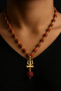 Experience the sacred power of the 5 Mukhi Rudraksha Mala, beautifully designed with a gold-plated Trishul pendant and an authentic natural Rudraksha bead. This mala is not just a piece of jewelry, but a powerful spiritual tool that connects you to divine energy, shields you from negativity, and enhances inner peace.