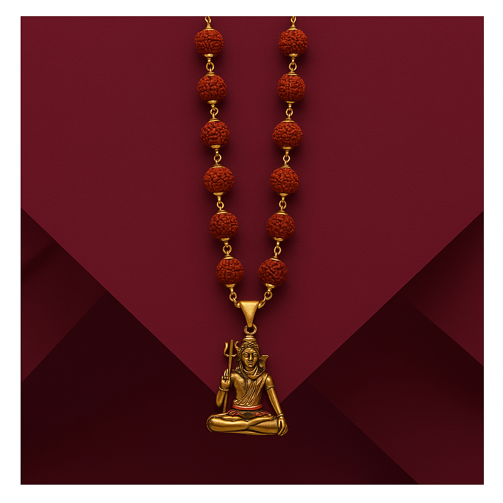 Authentic Rudraksha Mala with Gold-Plated Shivji Pendant