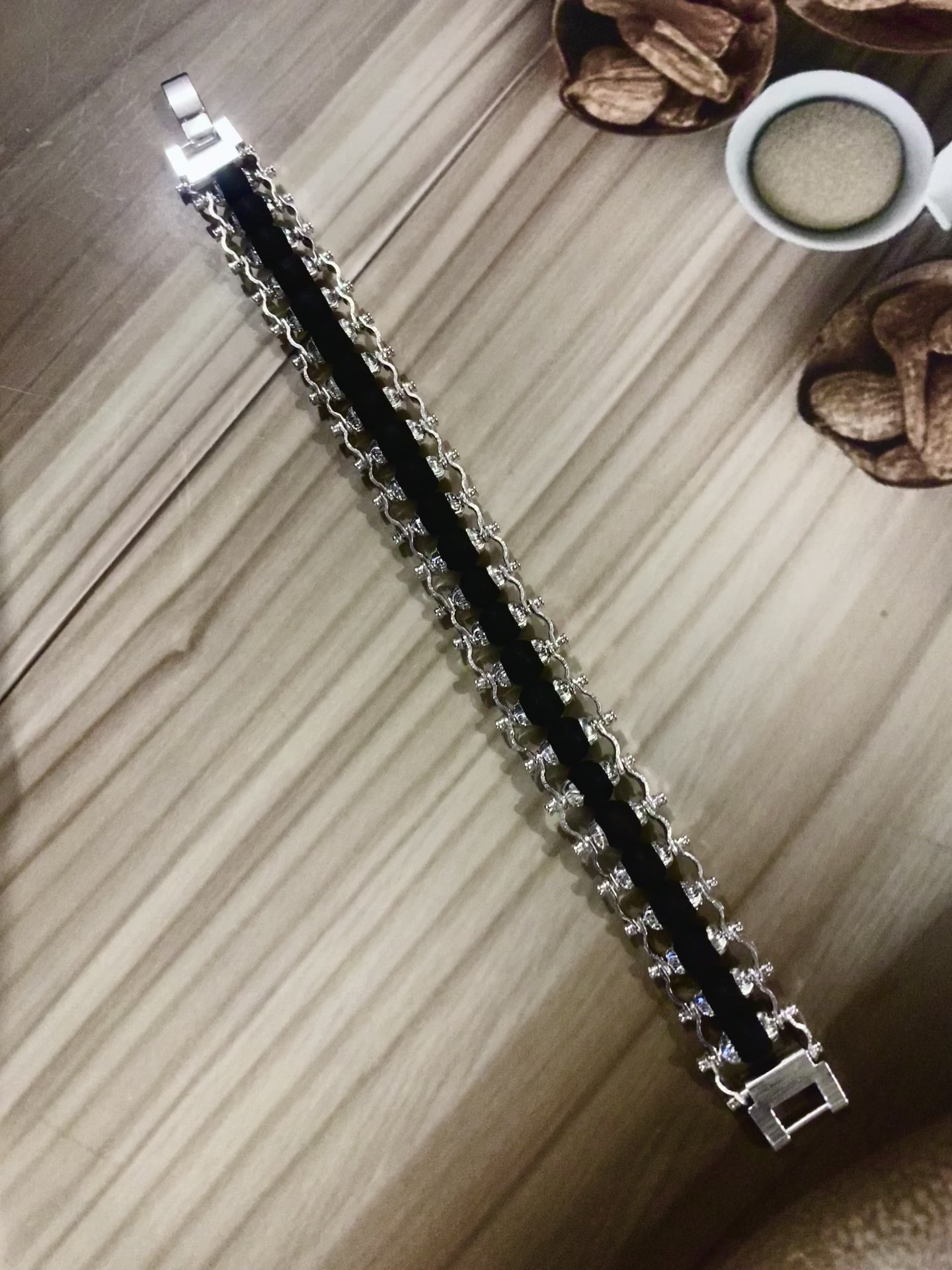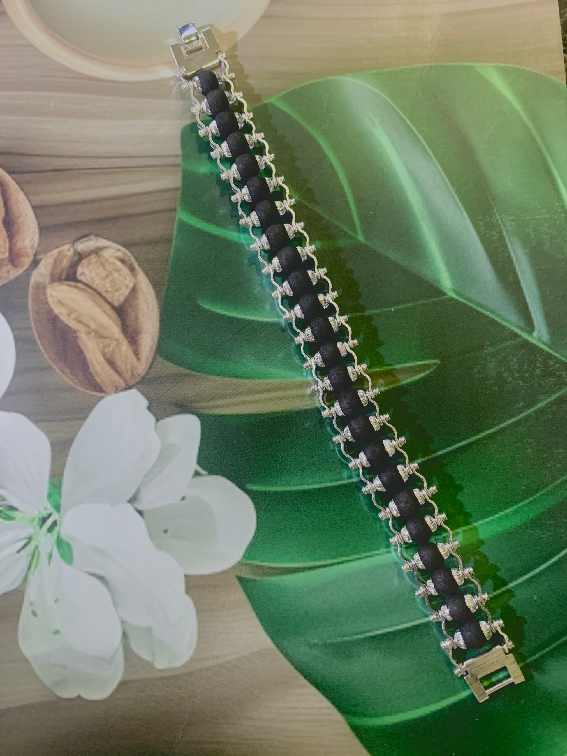 Karungali Ebony Wood Bracelet with Silver-Plated Finish